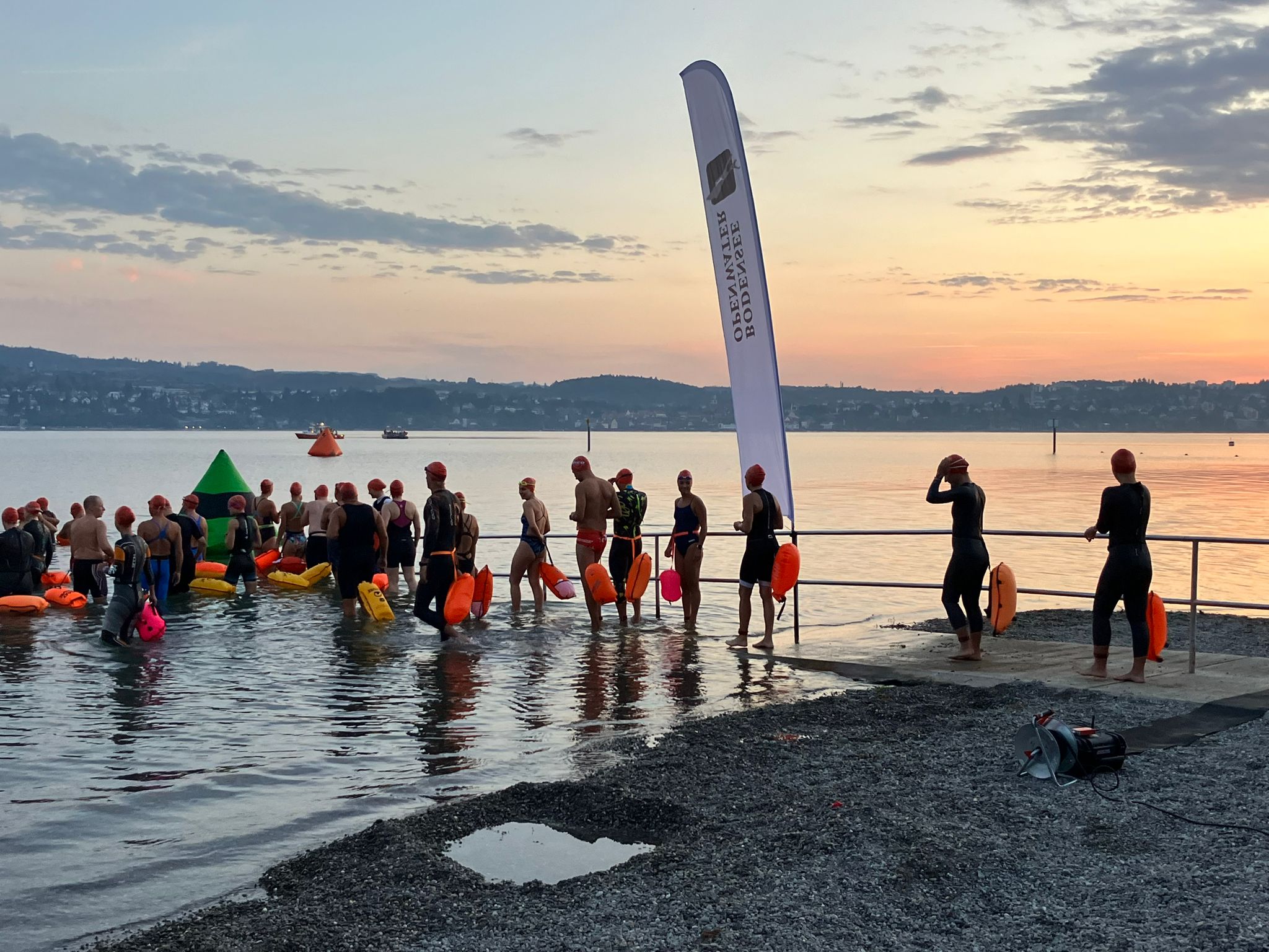 Wieder einmal als „Marathonmann“ hat sich Hans Müller gezeigt. Beim Wettkampf von Friedrichshafen nach Romanshorn wurde der Bodensee über 11 km (!) gequert. Beim Start um 6 Uhr waren die Bedingungen richtig gut, sodass die insgesamt 78 Teilnehmer ohne Neopren starteten. Hans überraschte dabei mit der Verbesserung seiner Bestleistung um über 30 Minuten und belegte in seiner Altersklasse im Ziel den 3. Platz. Ein toller Erfolg, an den bei den Wettkämpfen in Luzern und Weggis angeknüpft werden sollte. Aufgrund sehr schlechter Wetterverhältnisse wurden die Rennen aber leider abgesagt.
